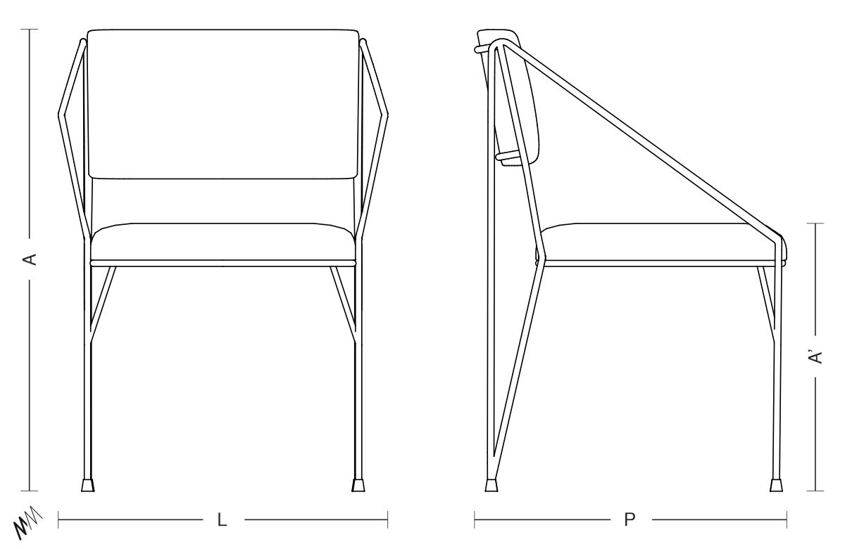 (L) 57 x (P) 54 x (A) 80cm (altura do assento A’=47 cm)