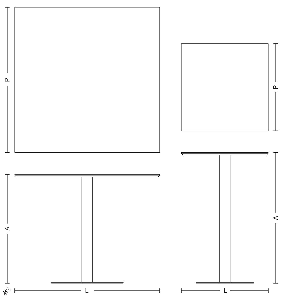 Bistrô: (L) 50 ou 60 x (P) 50 ou 60 x (A) 90 cm